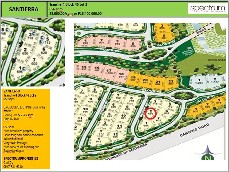 **SOLD**[SANTIERRA,NUVALI] -656sqm Small size Premier Lot for sale 25k / sqm